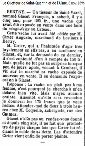 Il mourut à Bertry en 1926, là où il avait vécu et travaillé. La vache, elle, avait disparu depuis longtemps.